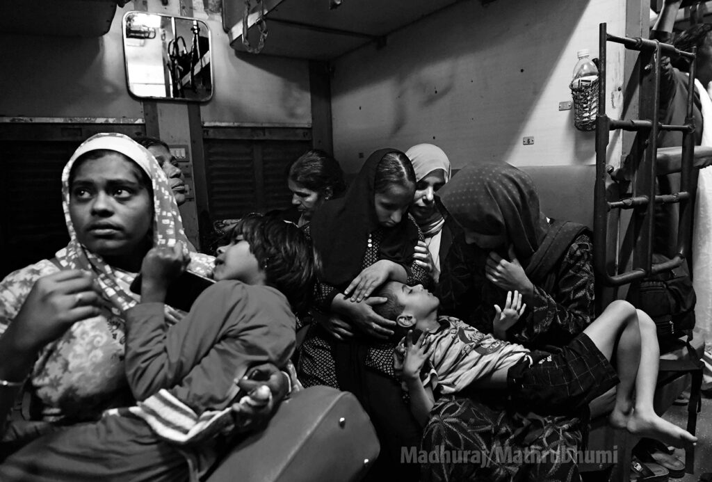 Fig 4. Mothers traveling to Trivandrum to participate in a hunger march in Thiruvananthapuram (State Capital).
